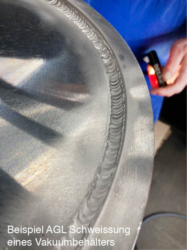 AGL Schweissen ist bei der Herstellung von Land, Wasser- und Luftfahrzeugen, sowie in der Raumfahrt bereits sehr etabliert. Durch den optimalen Einbrand eignet sich das Schweissverfahren ebenfalls optimal für Druck- oder Vakuumbehälter.